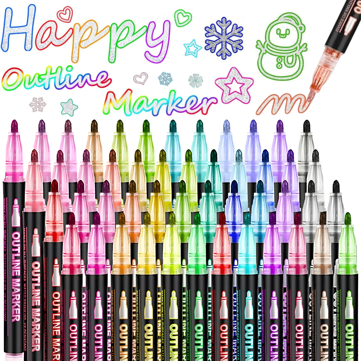 These double line outline markers create a unique shimmering outline effect with every stroke.