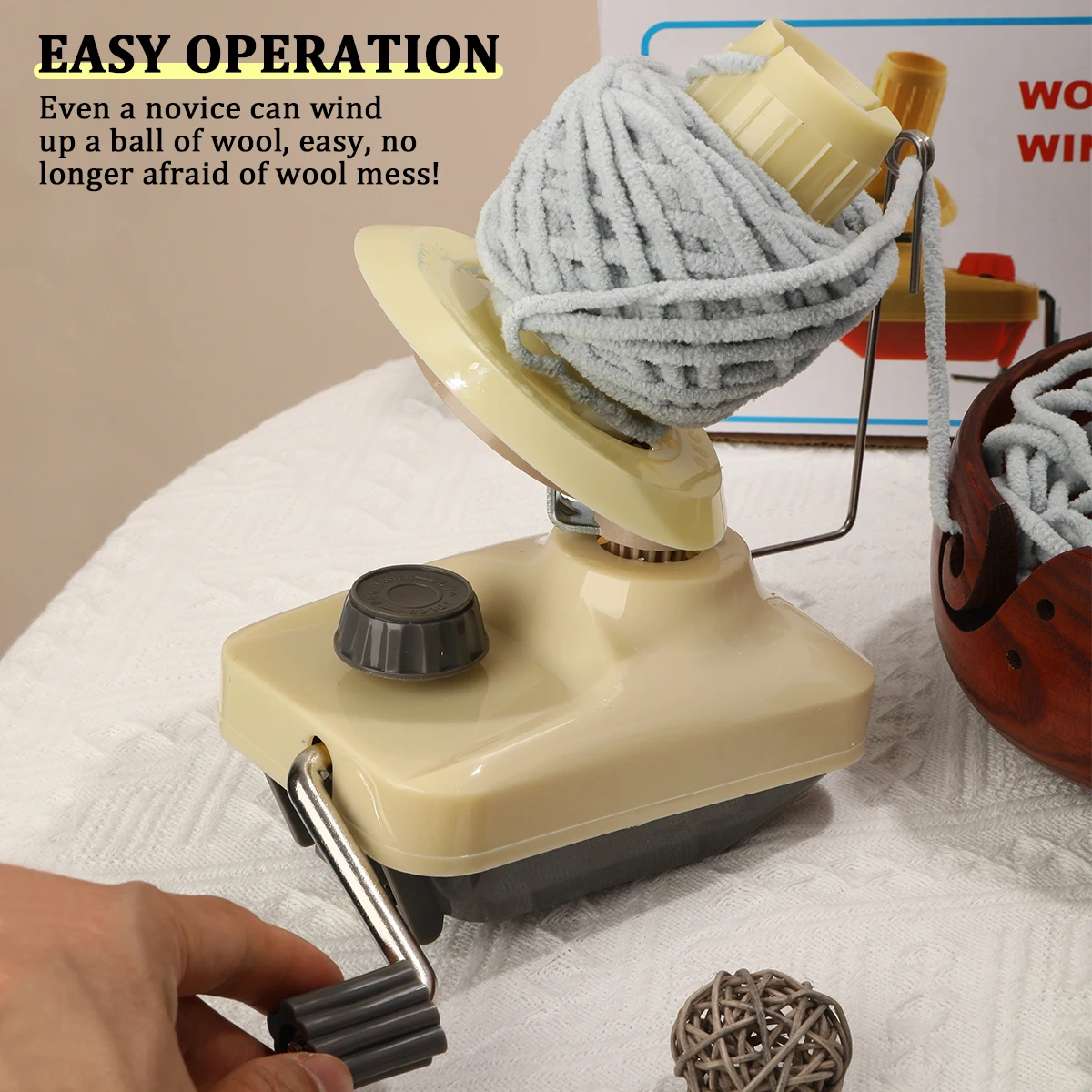 This portable hand-operated yarn winder is perfect for creating neat and uniform yarn balls.